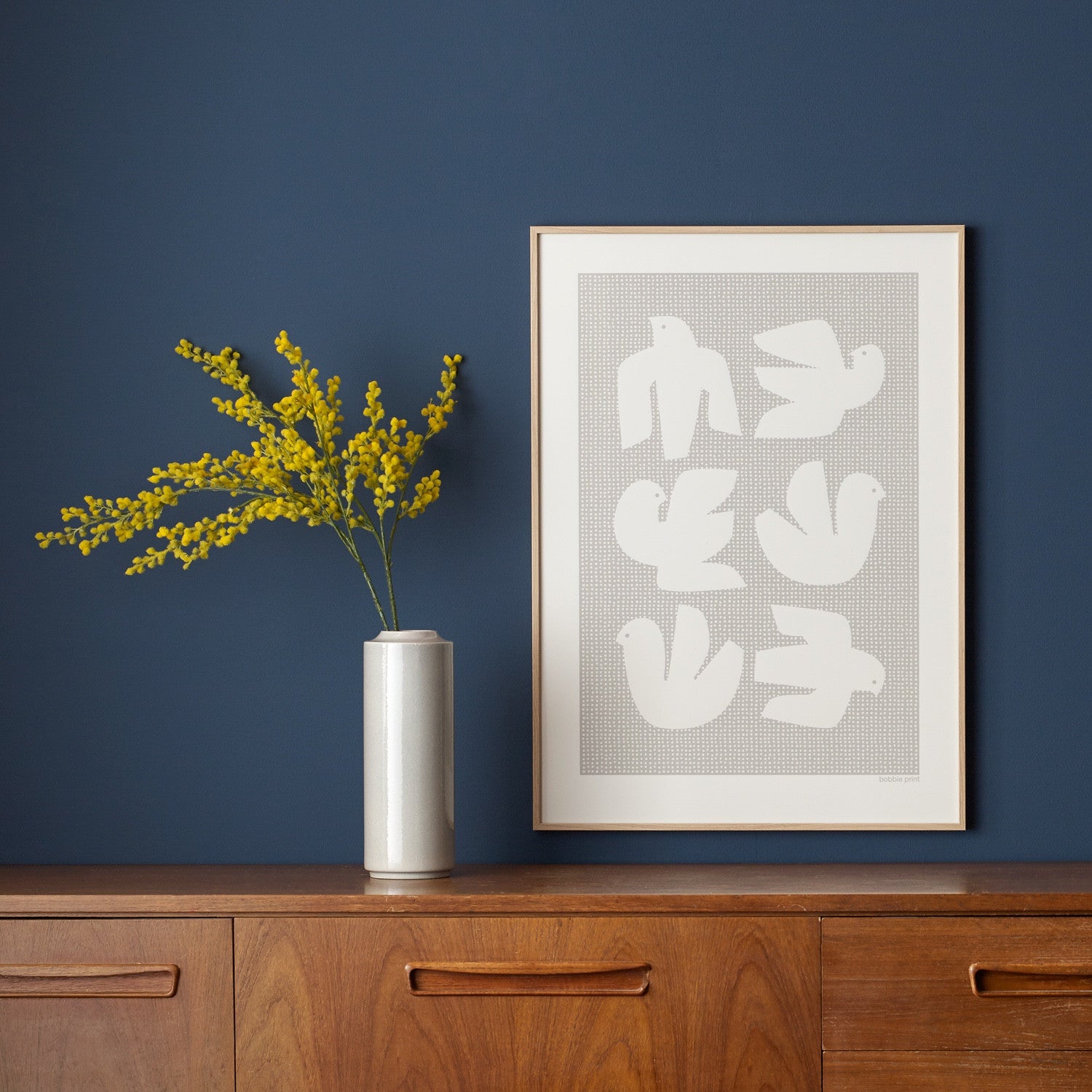 Elegant and understated, this hand printed poster is clearly influenced by an admiration of Scandinavian and mid century modern design.