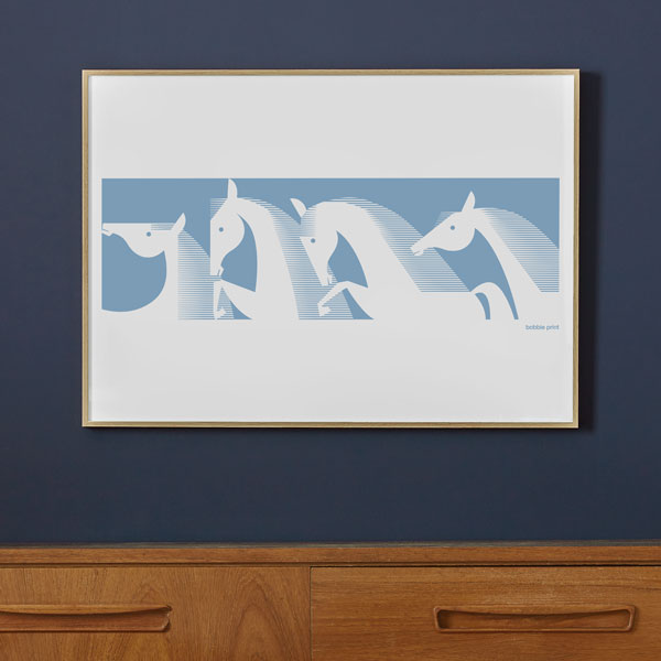 The horse's outlines have been simplified to give a graphic and modern feel, detail is sparsely used but carefully placed to create an un-cluttered and thoughtful piece of art.